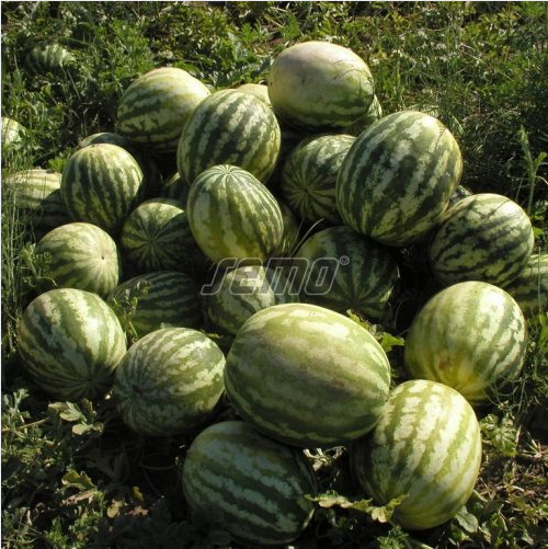 varane, vilja kaal 7-10kg, heleroheline tumeroheliste triipudega koor, magusa maitsega, viljaliha erepunane, kasvuaeg 80-85p